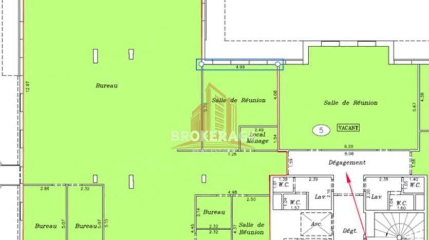 Plateau – Surface locative : 322 m² –Stationnement : 11 parkings intérieurs sur demande